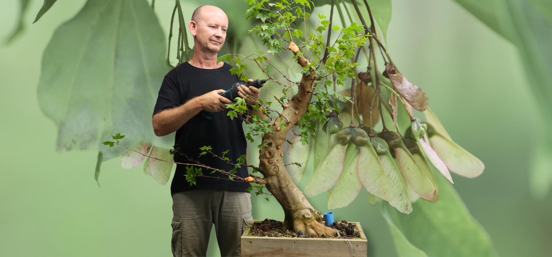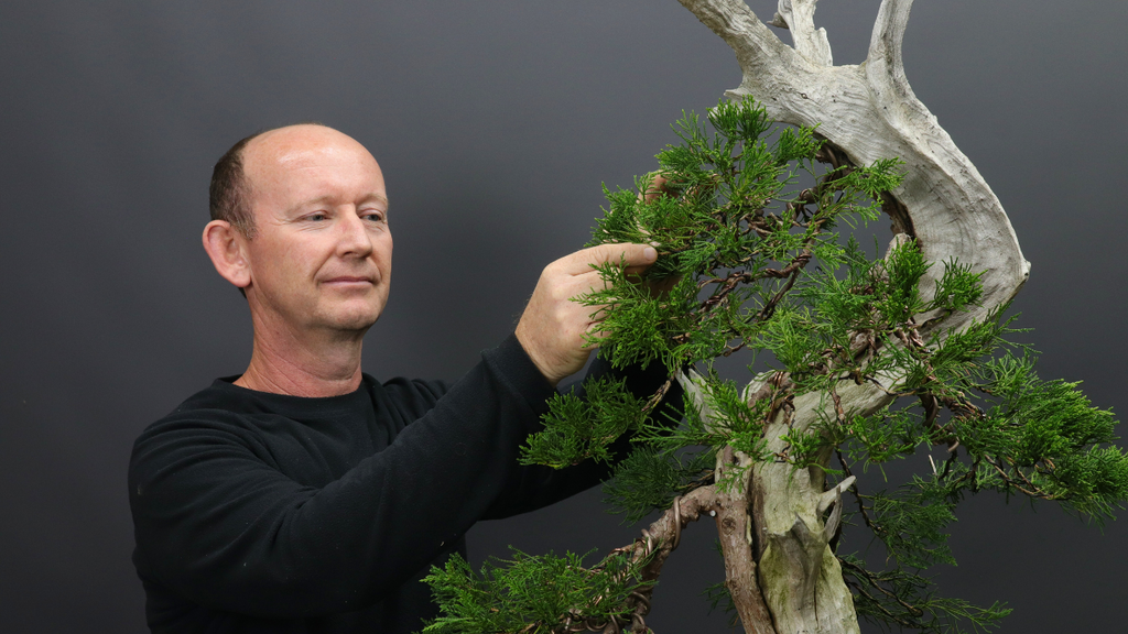 Terry Erasmus, a bonsai professional living in South Africa. He demonstrates and teaches a variety of skills and techniques associated with growing, refining and maintaining many different species of trees including Pines, Maples, Hackberry and indigenous South African species. Terry shares advice on tools, wire, soils, fertilizers and more