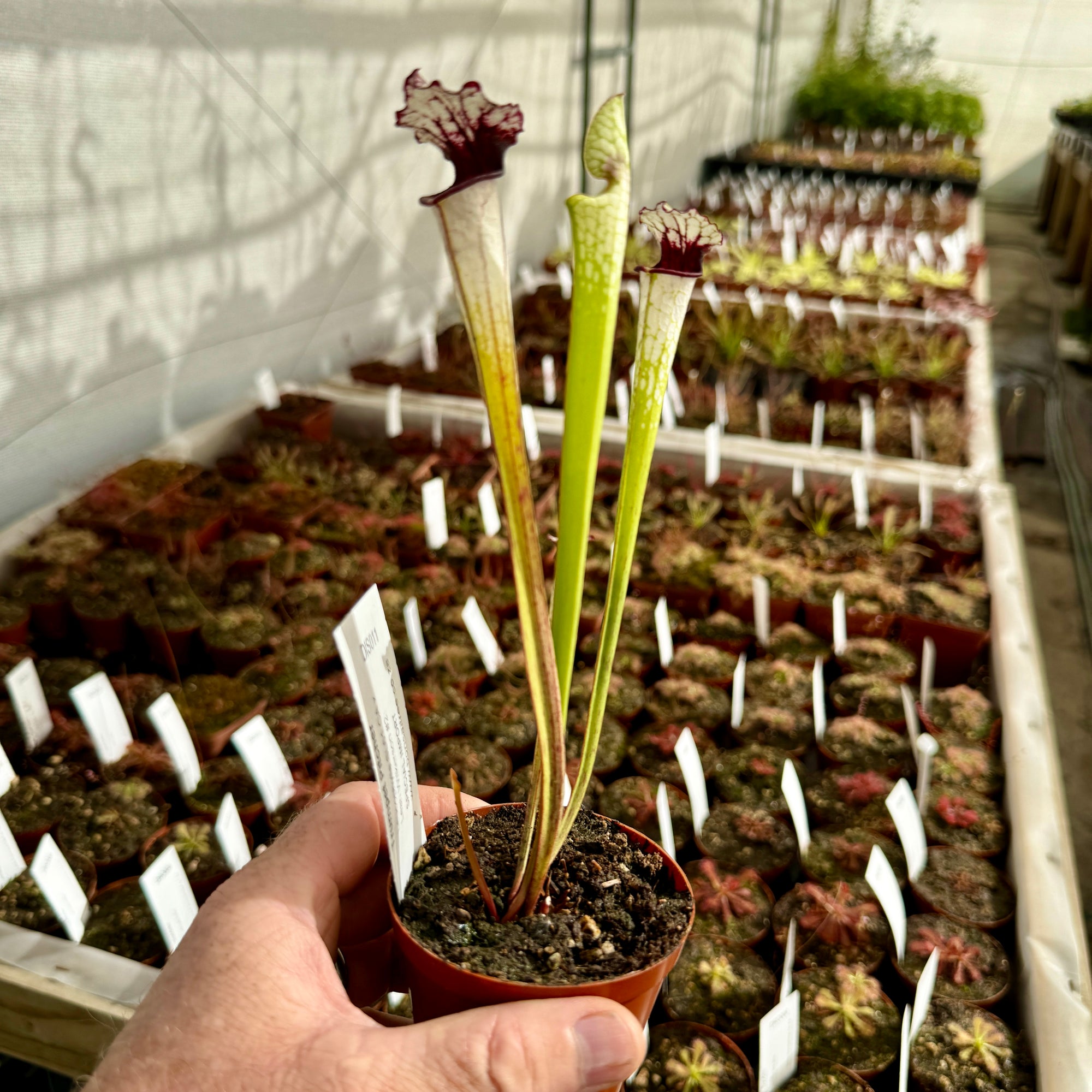 Looking for a lethal fly catcher? Most people think Venus Fly Trap but they are wrong. No carnivorous plant catches more flies than the Sarracenia. In fact all flying insects find the Sarracenia irresistible and are trapped in their long pitchers.