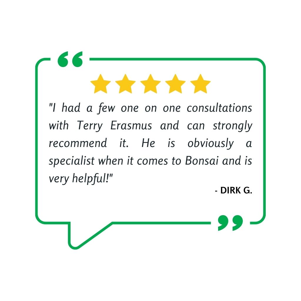 You certainly don't want just anyone working on your trees or giving you advice right?! Want to know more about Terry Erasmus and why you should consult with him or have him work on your bonsai? Read his bio here.