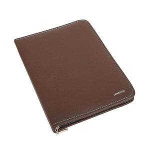 • Stylish Brown Zippered Protective Tool Case with a purple inner lining for secure storage.